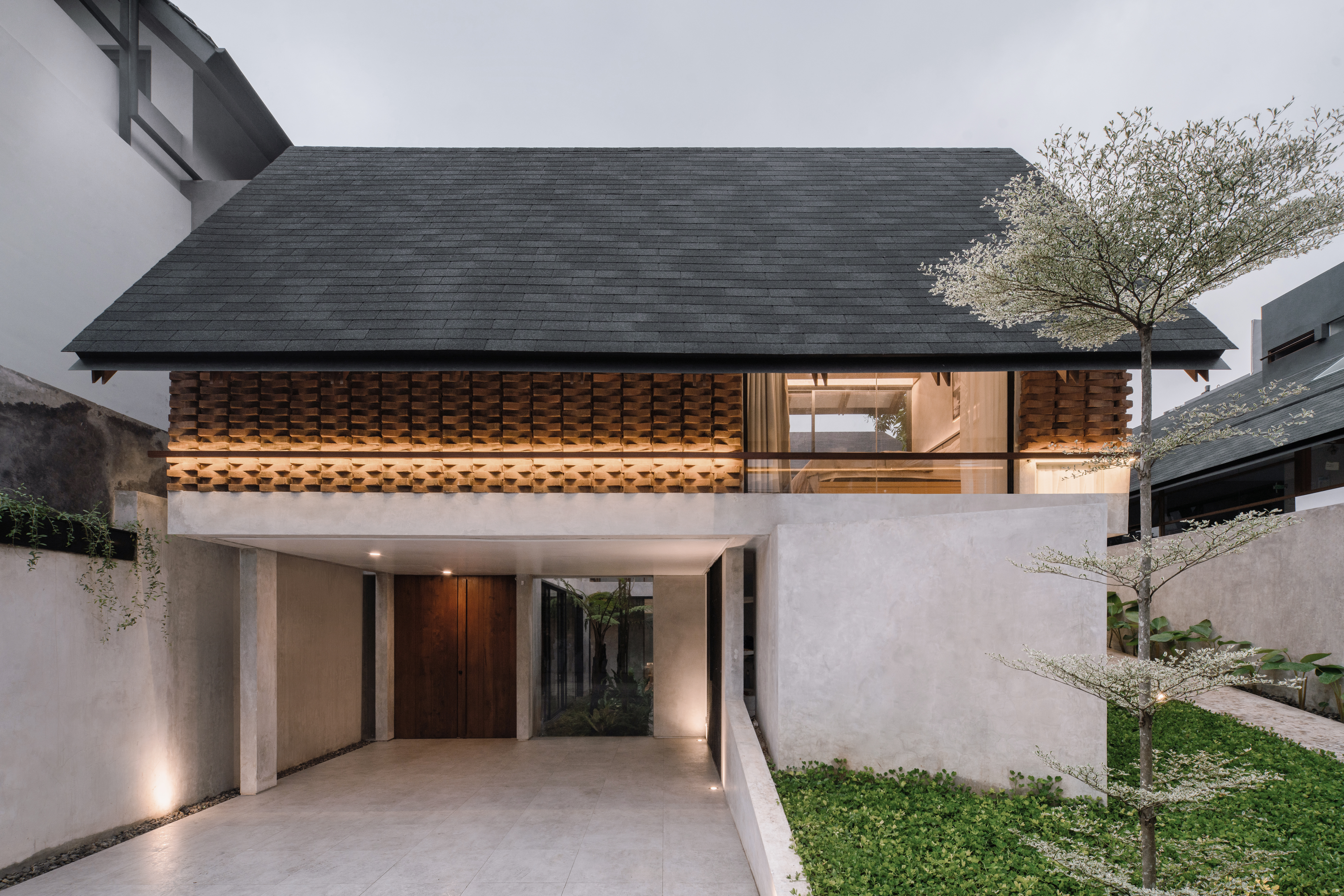 ACH House is located in an urban residential area of South Jakarta. Stand on the site in the shape of extending backwards. To maximize air circulation, mass sequence is made separately into two lean masses. Creating an inner court between the two building masses. Utilization of the built area as efficiently as possible according to client needs, so that it can leave a lot of green space.
