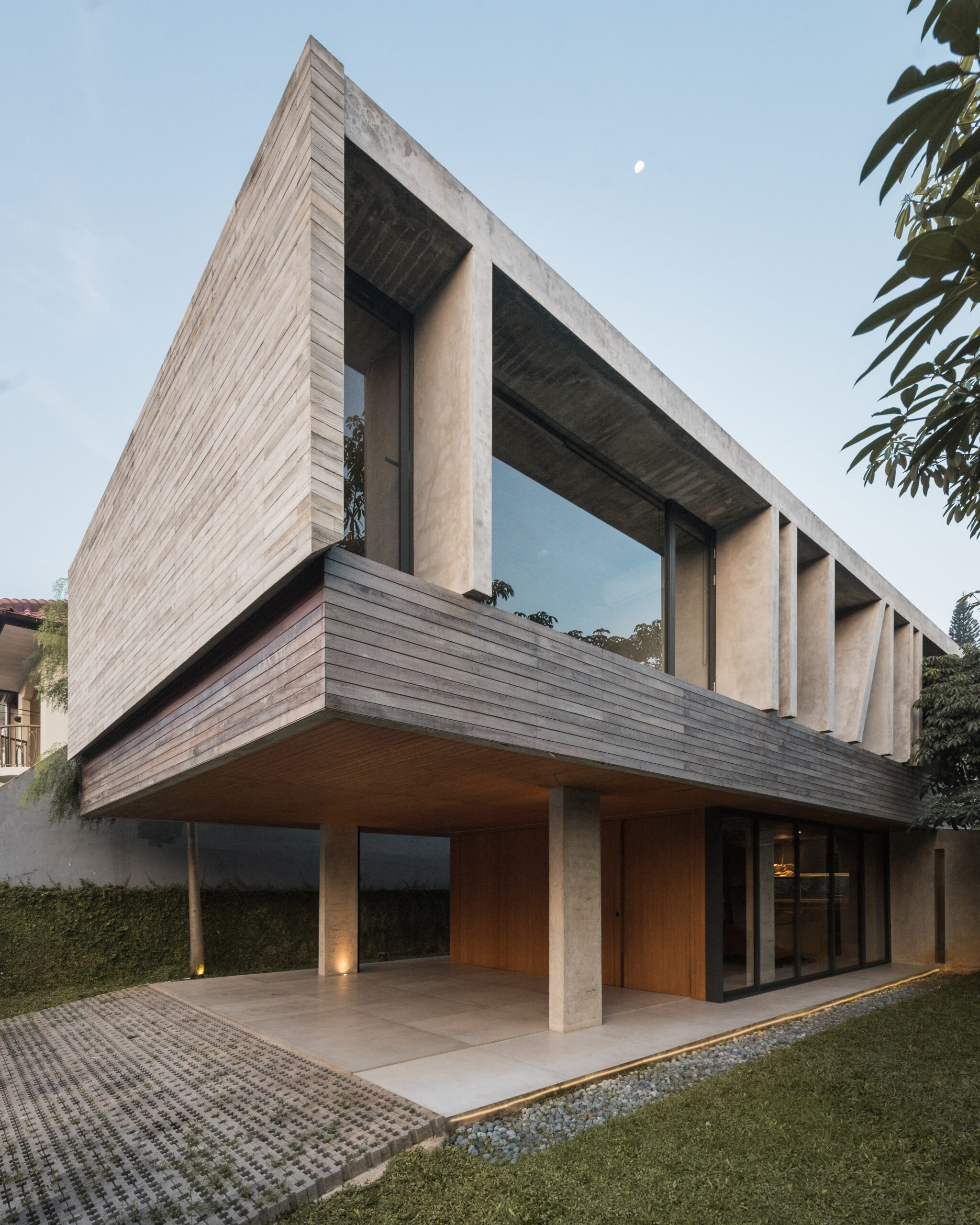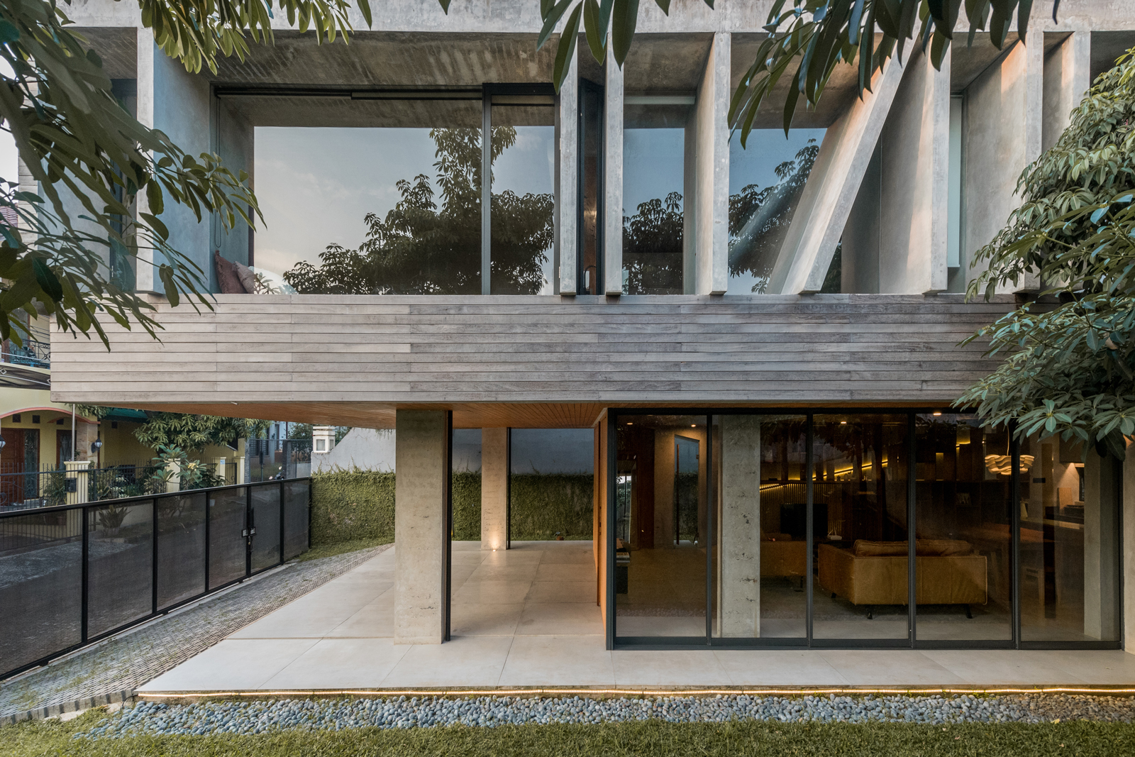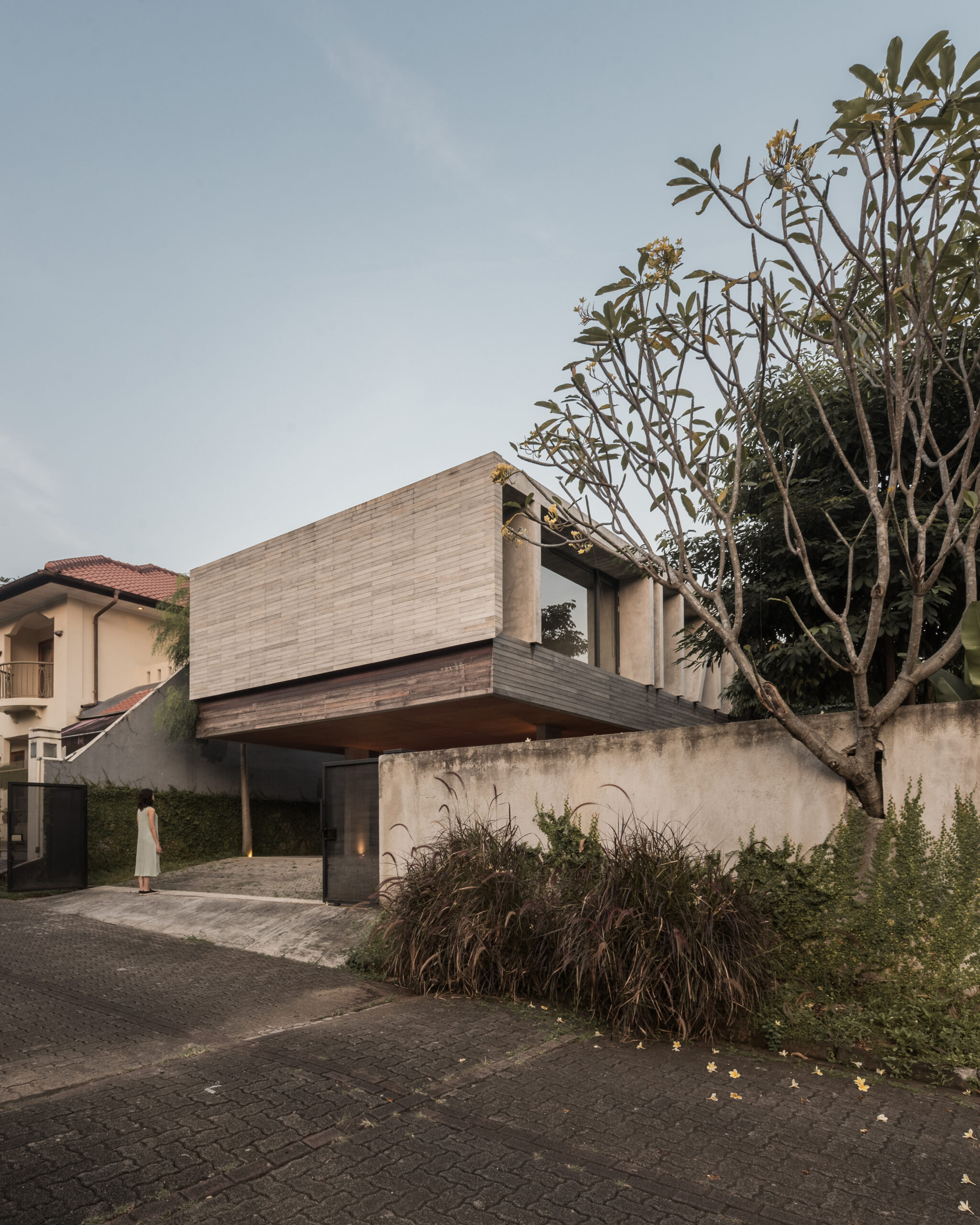 The project location is in the residential area of South Tangerang. The site is on the hook, so it has 2 exposed sides. Responding to the site orientation towards the sun, the layout of the building mass is maximized extending east to west with openings towards the north. The north side is a green area as a privacy buffer in the inner area. Meanwhile, the front facade area is a massive wall because it faces east.
