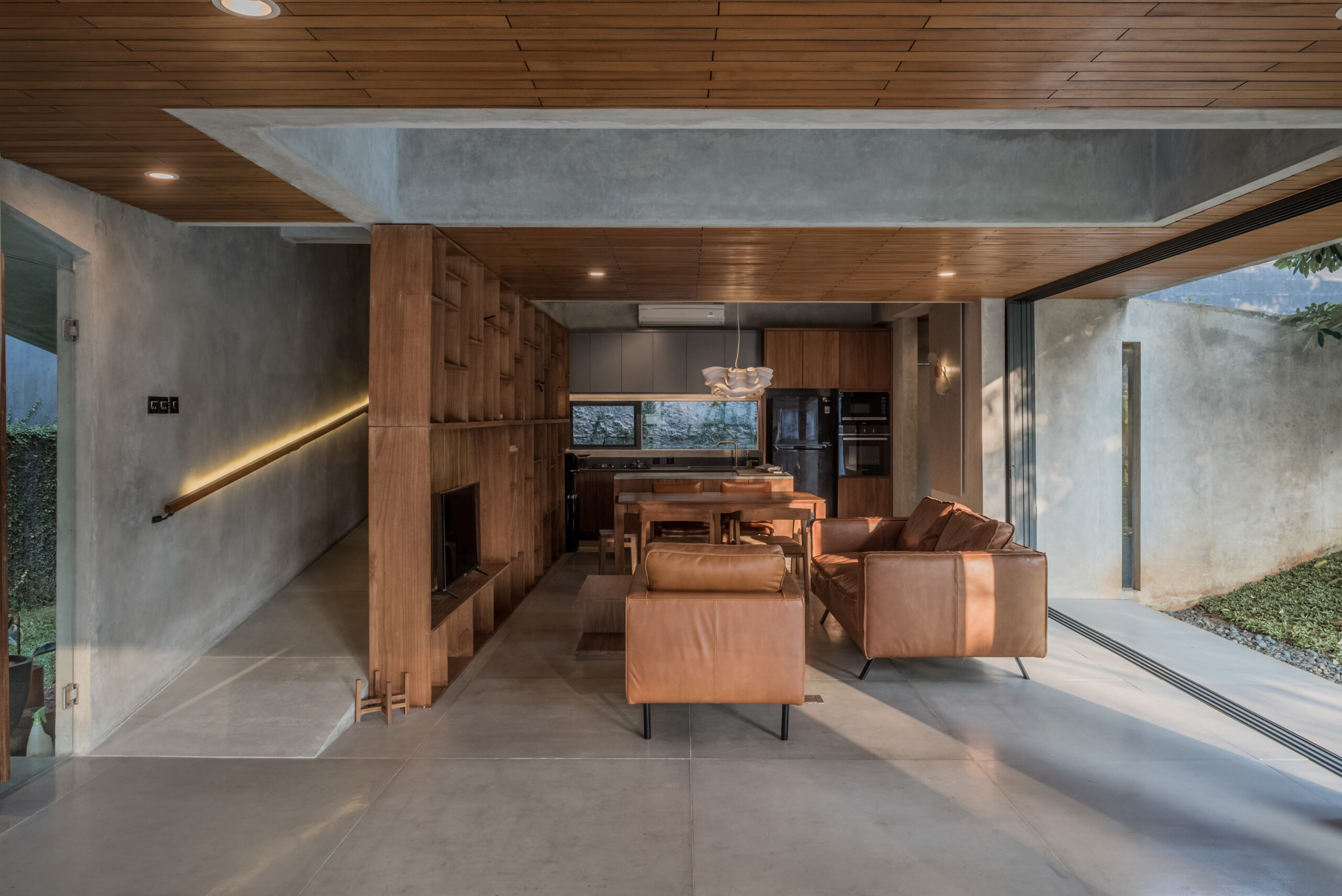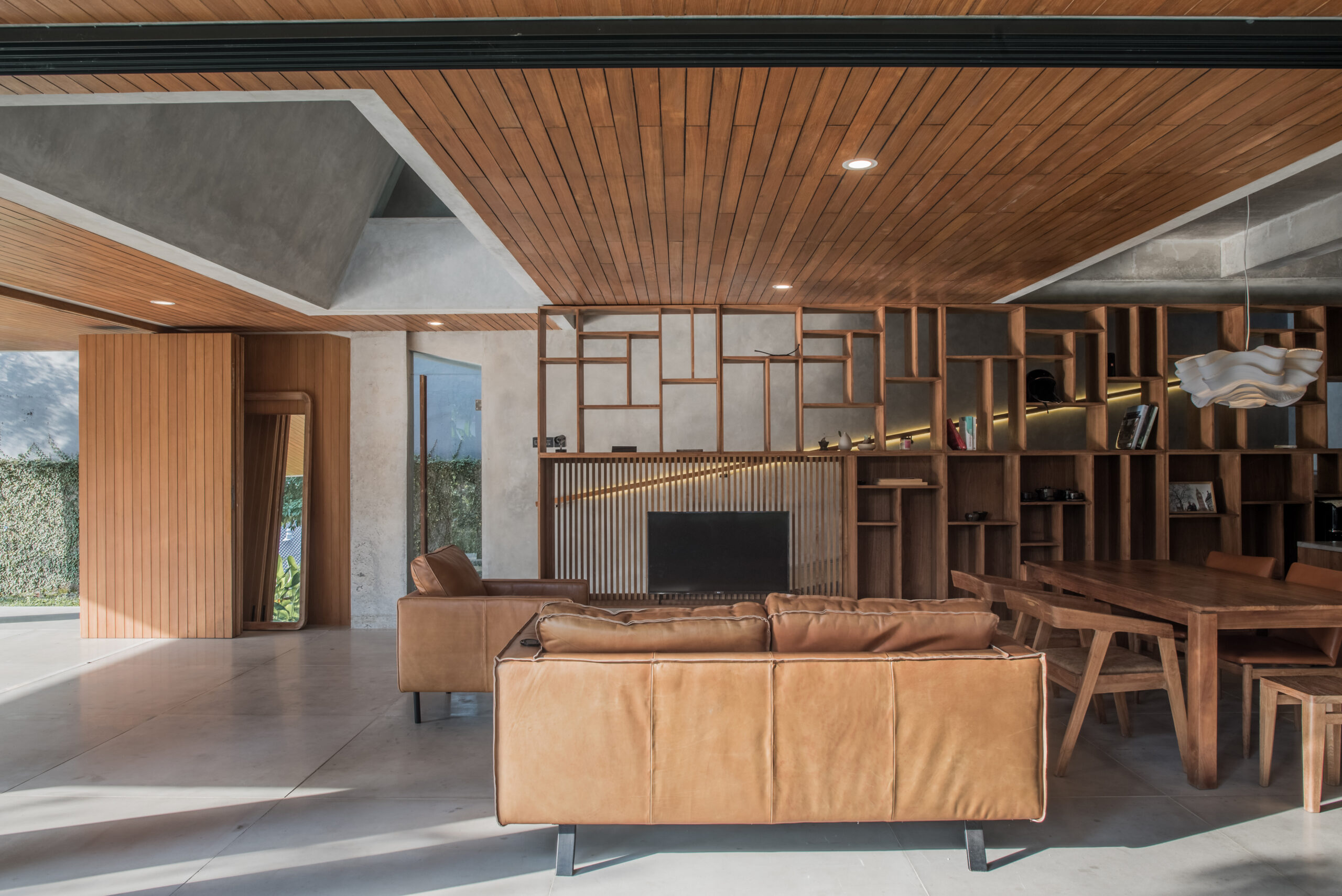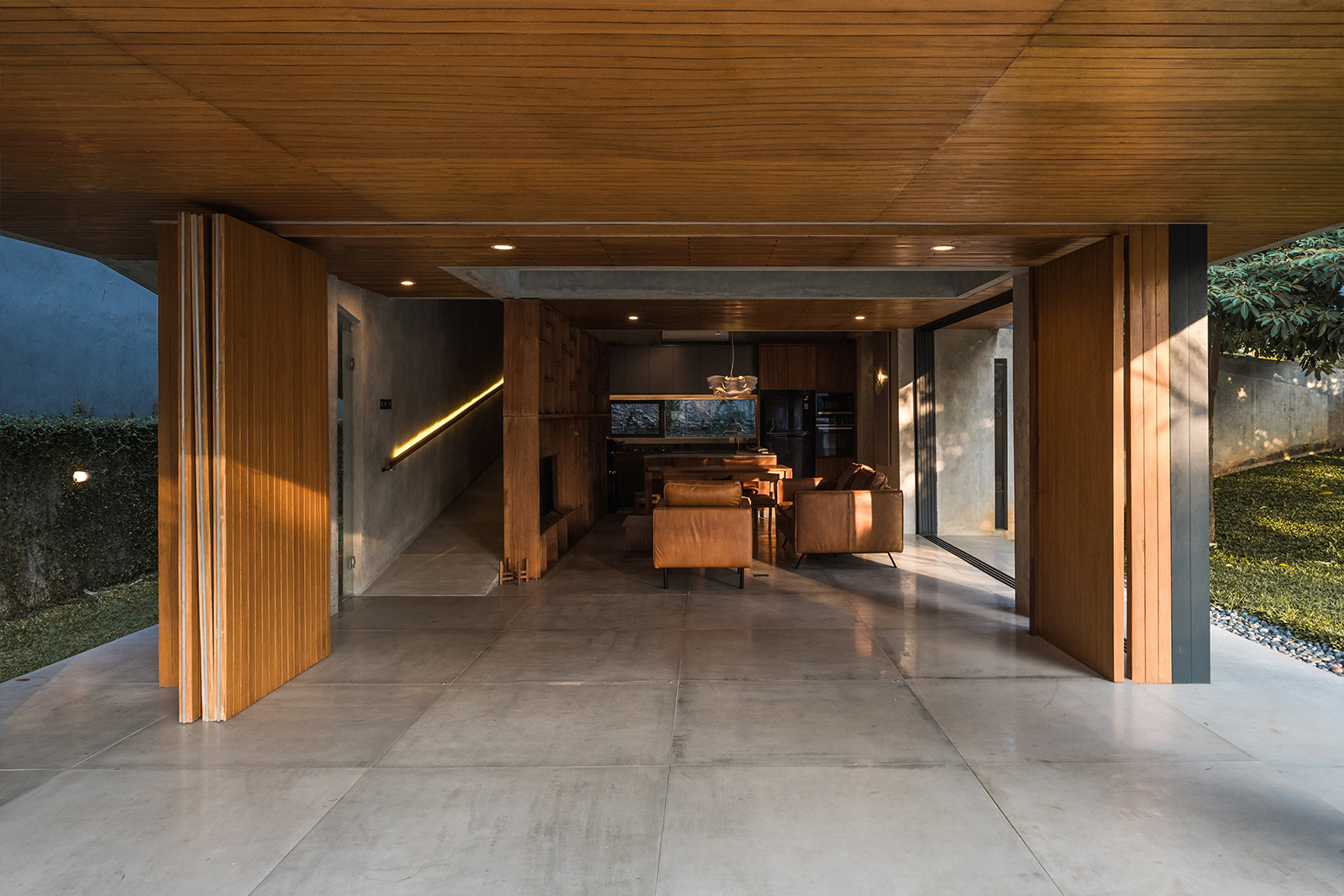Banjar House has 2 floors; the ground floor is for public and service areas, while the upper floor is for private rooms. The ground floor is a living room, dining room, pantry, and service area. The 1st floor consists of 2 bedrooms with attached bathrooms. Vertical circulation using ramps as a more user-friendly architecture. On the ground floor, indoor and outdoor dividers are designed flexible so that they can be folded as a space extension towards the terrace and garden to accommodate the need for additional space at certain times.