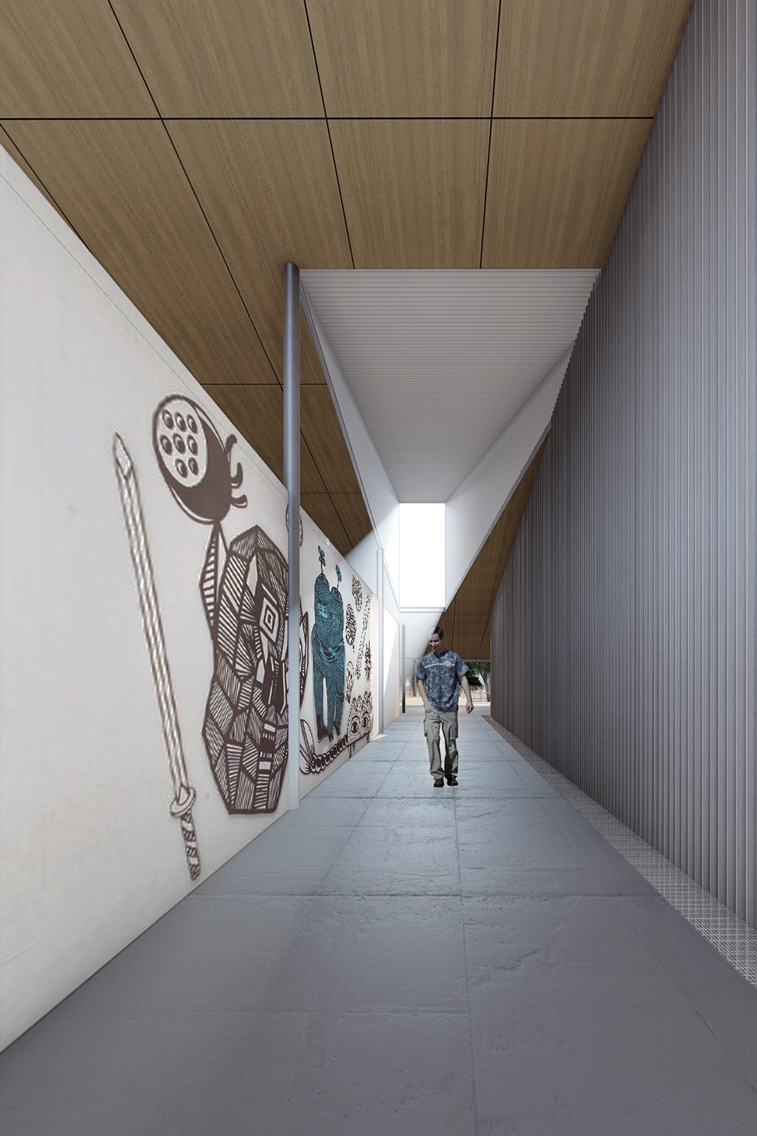 Ide grid modular sederhana pada massa bangunan untuk memudahkan proses pembangunan dan pembongkaran kembali pada saatnya nanti. Struktur baja dan material prefabrikasi dipilih agar sifat bahan setelah di lepas tetap seperti sedia kala. Hanya kulit yang memudar dimakan usia namun tetap berguna. Tentunya berguna untuk sesama yang mebutuhkan, Menukil data BPS tahun 2018 pada kelurahan di sekitar site terdapat sekitar 5-10% bangunan semi dan non permanen yang kemudian perlu dibantu melalui progam lestari suri kelak. Memberi kesempatan material di kehidupan berikutnya untuk tetap berguna.