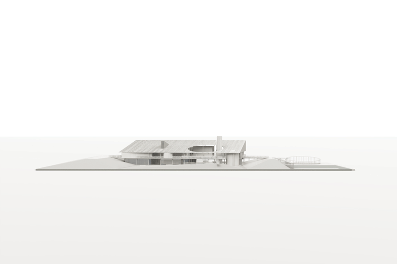 Gubahan massa yang sederhana, geometris murni yg teratur, komposisi satu ruang dan ruang lainnya yang dinamis dan keterhubungan ruang menjadi ide besar pada bangunan ini. Setiap fungsi ruang di hubungkan dalam naungan atap besar, yang menciptakan ruang-ruang cair yang diantaranya. Gubahan massa ini diharapkan menjadi tenggara bersahaja sebagai pusat kegiatan arsitektur dan desain di kawasan Bintaro Jaya.