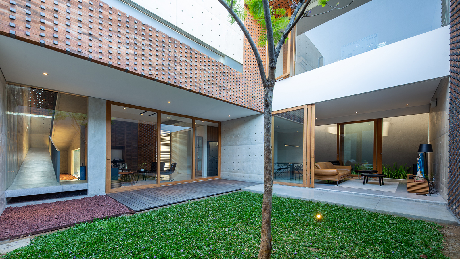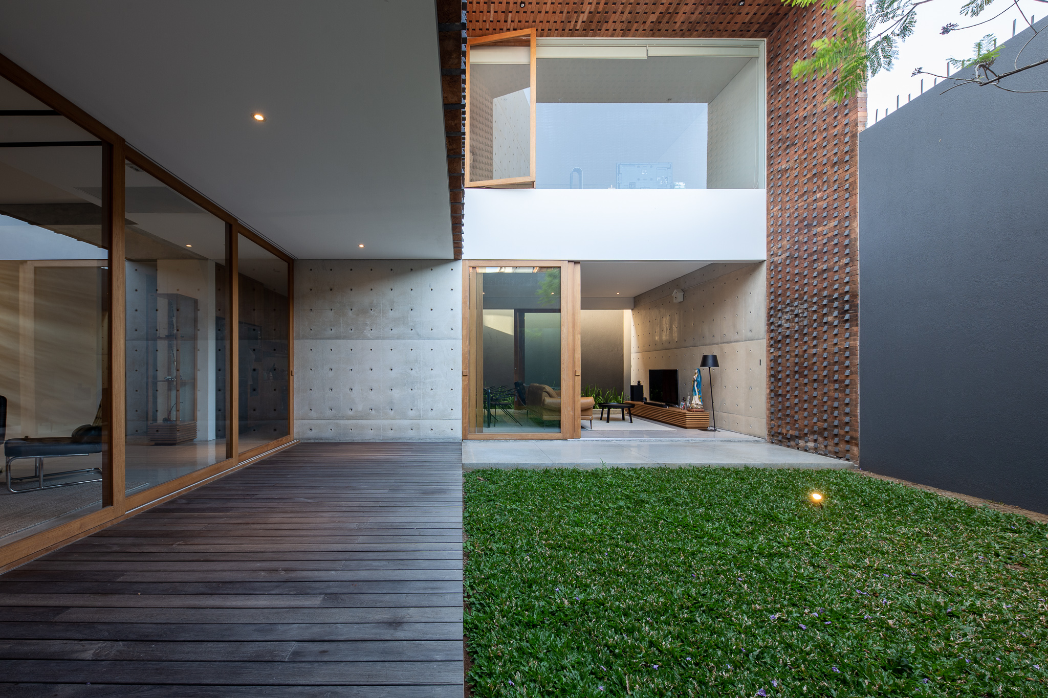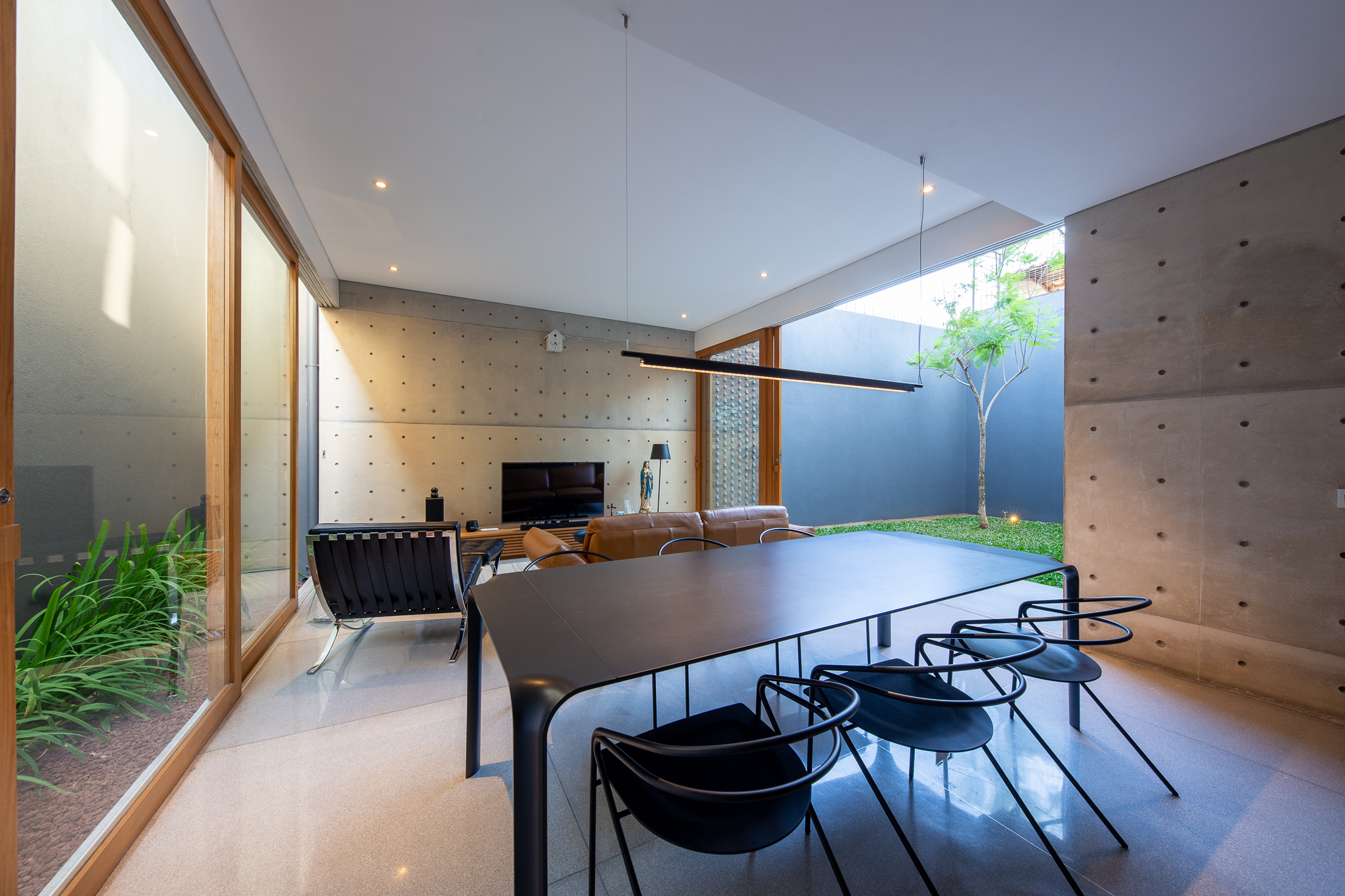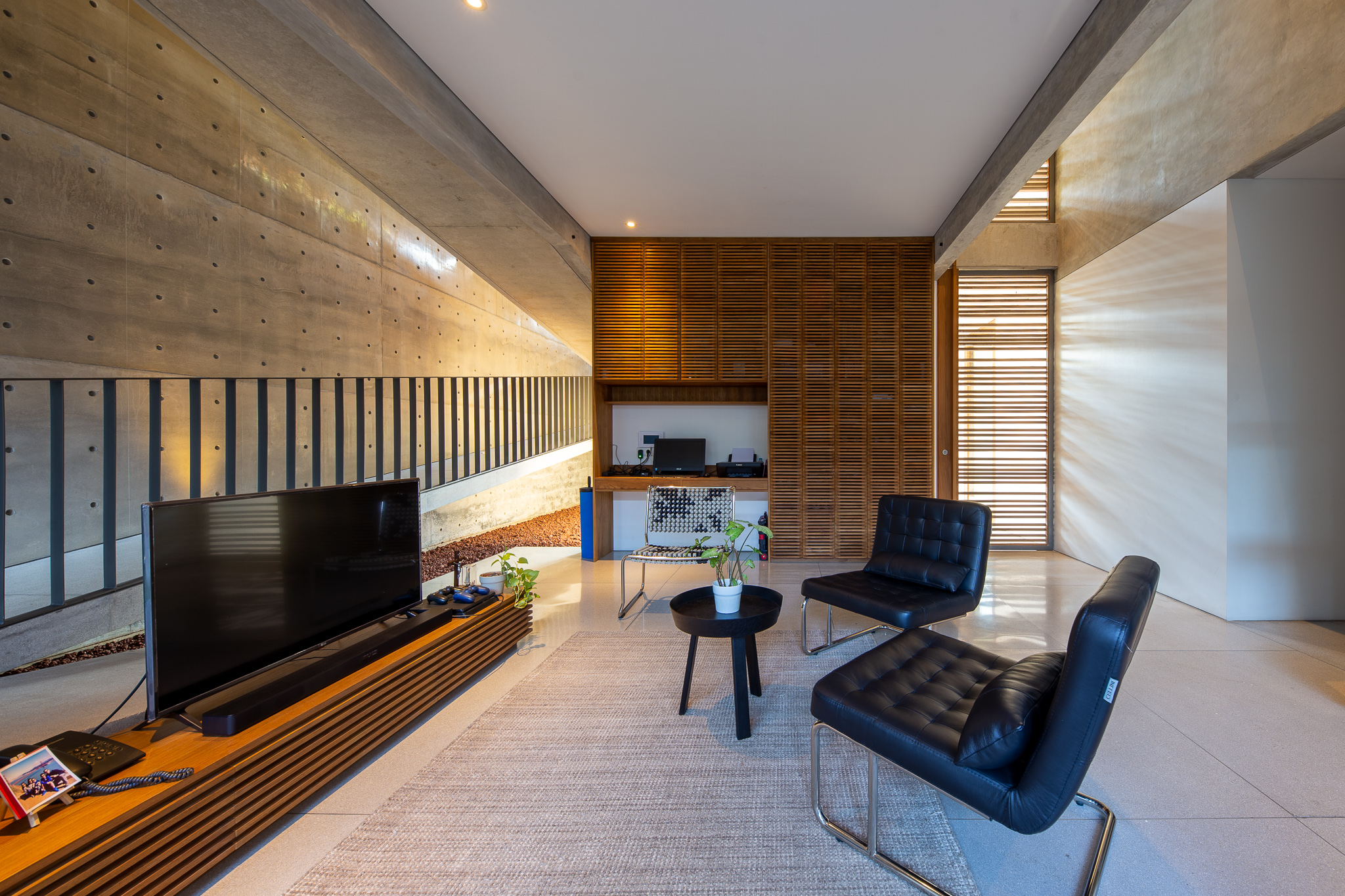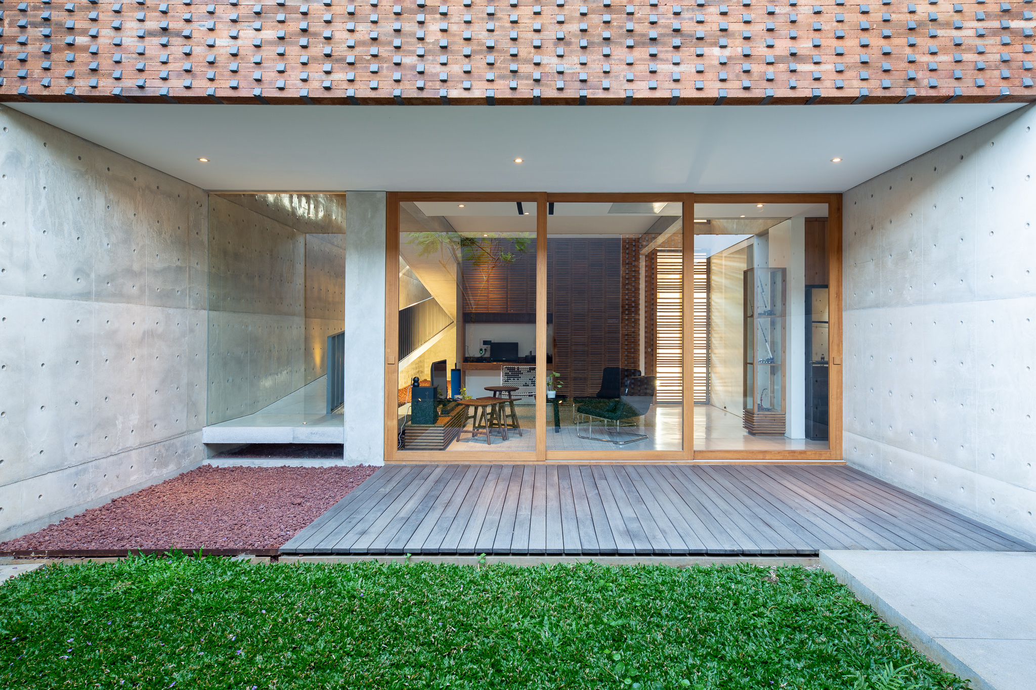 The basic form of GPH House consists of 2 main boxes with a back-and-forth composition with finishing materials and sleek openings. The main materials used are concrete and exposed brick. The selection of exposed concrete on the exterior and interior walls minimizes maintenance. The exposed brick game was applied to the exterior walls and ceiling to give the house a warm color.