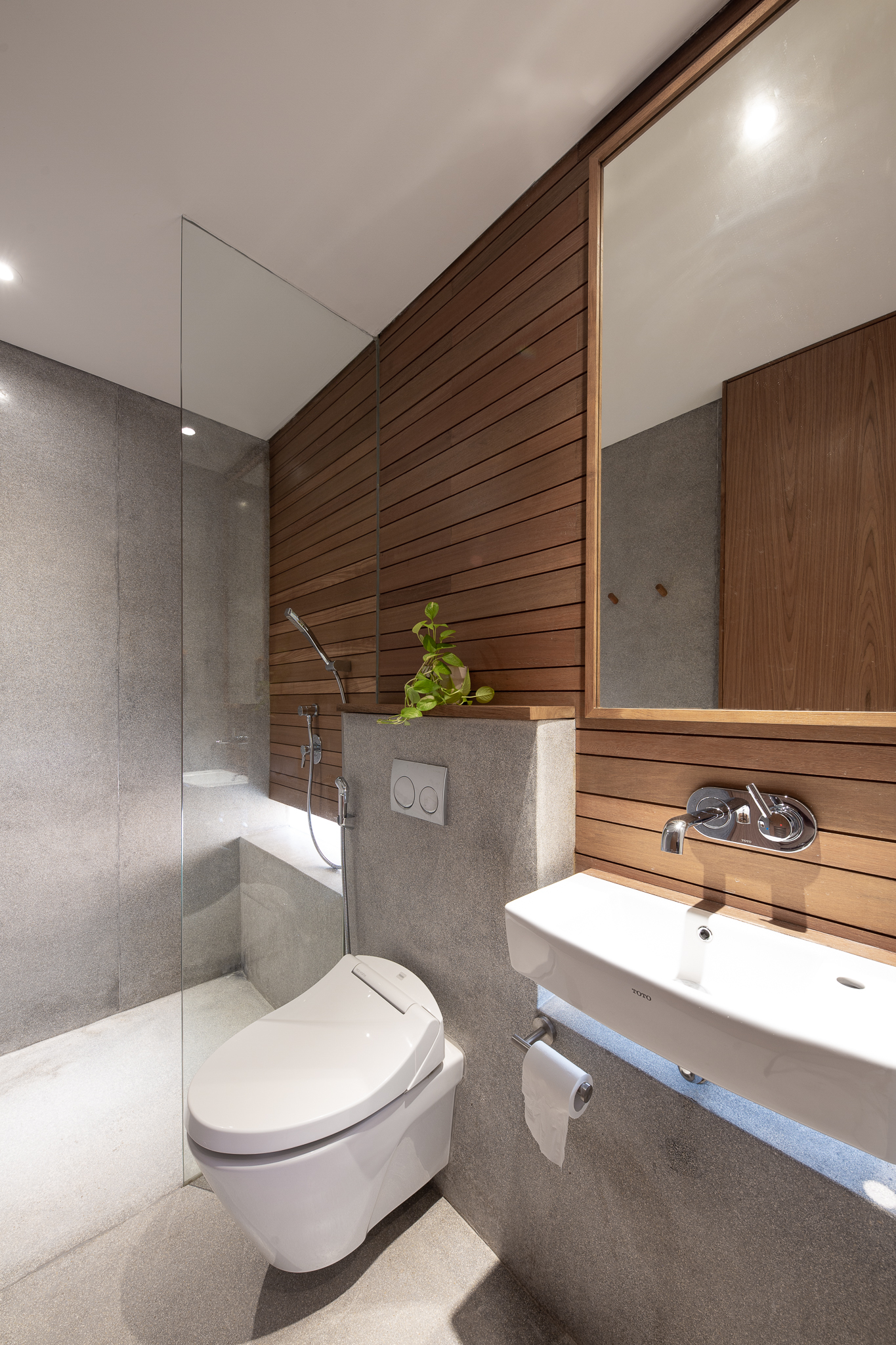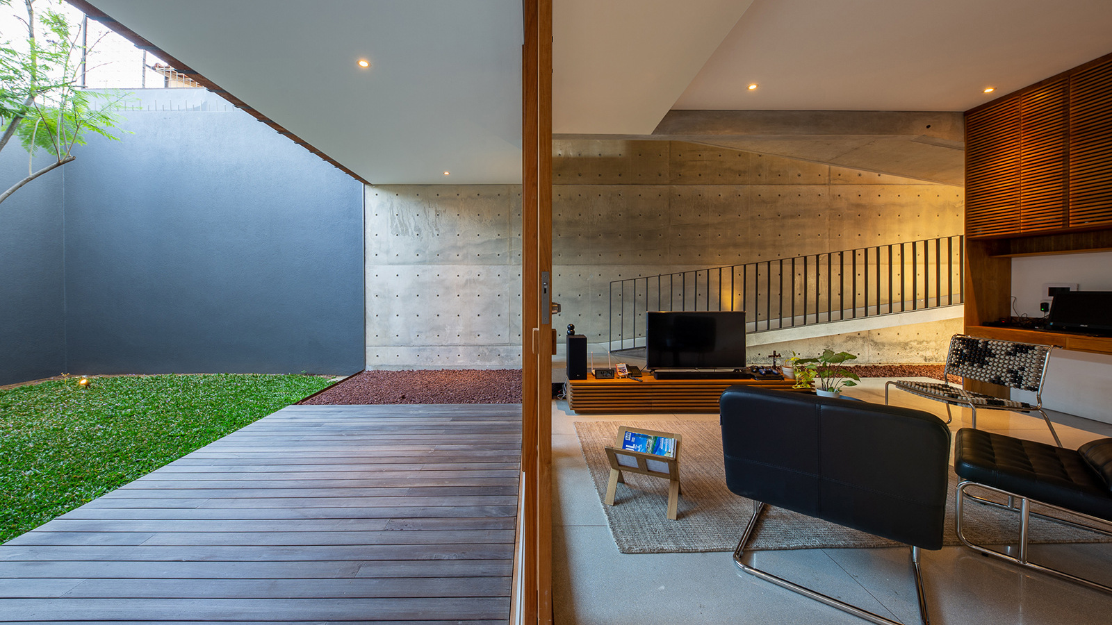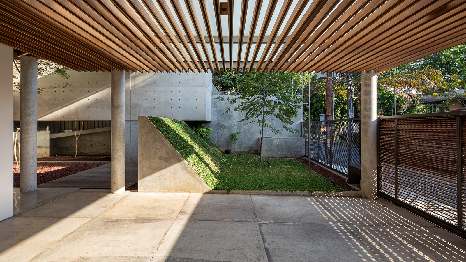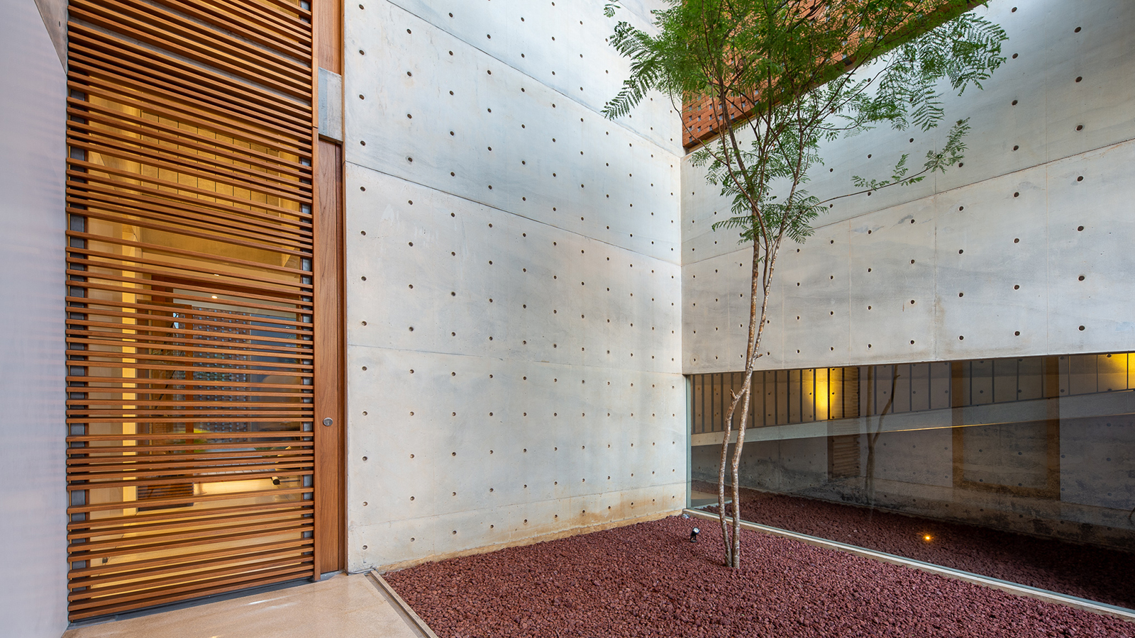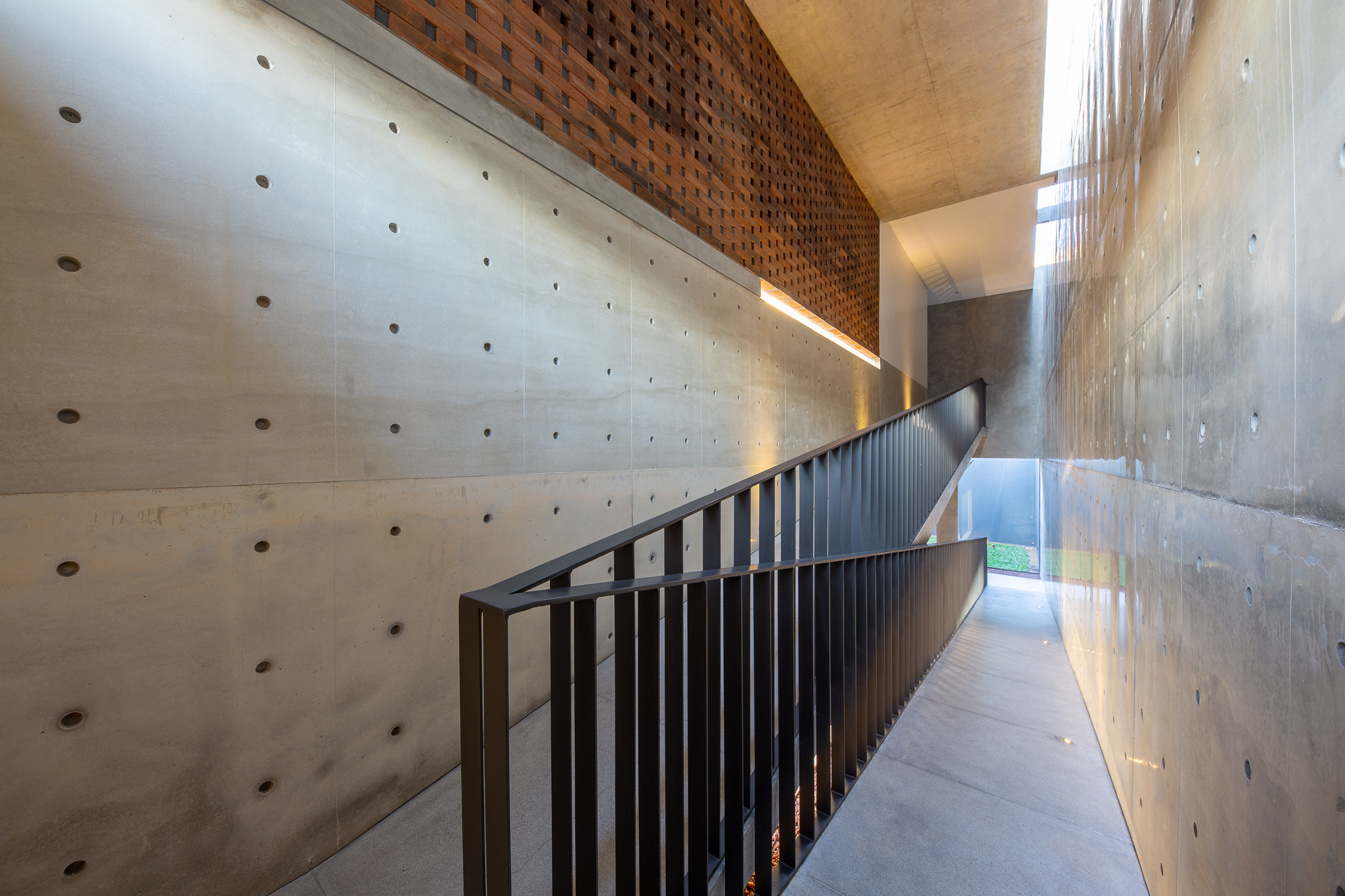The basic form of GPH House consists of 2 main boxes with a back-and-forth composition with finishing materials and sleek openings. The main materials used are concrete and exposed brick. The selection of exposed concrete on the exterior and interior walls minimizes maintenance. The exposed brick game was applied to the exterior walls and ceiling to give the house a warm color.