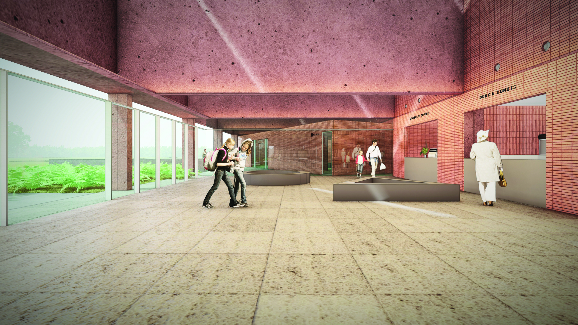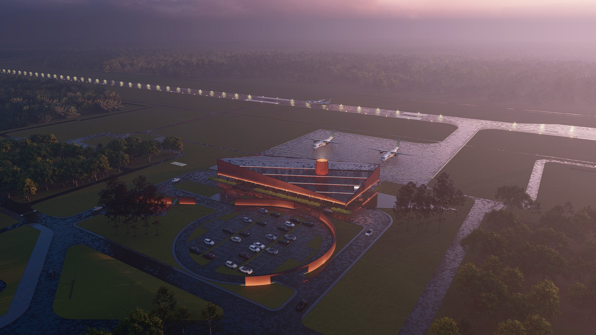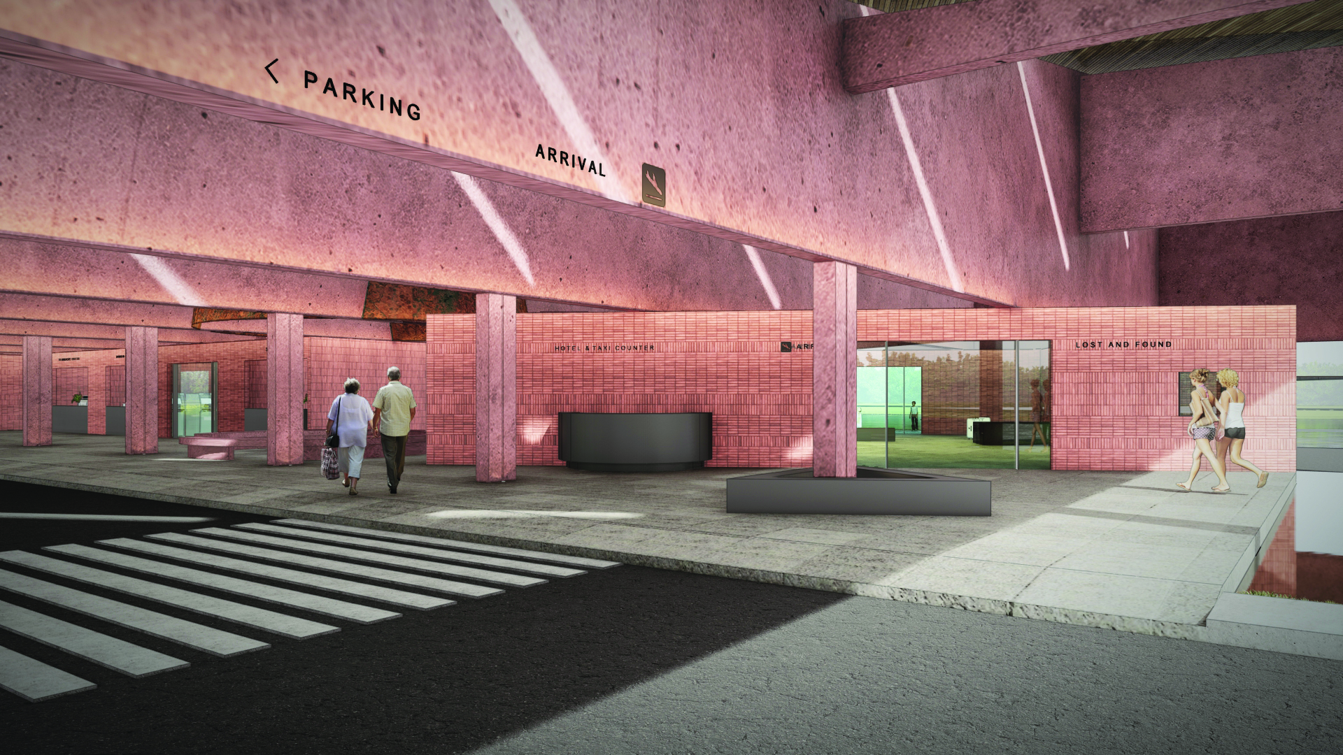 The airport mass is designed linearly in a large-span structural beam netting, with the arrangement of dynamic spaces, like a random box composition, which creates interesting in-between spaces. Thus creating a space experience in the departure zone and more fluid arrivals of airplane passengers. The two diagonal corners of the airport mass are pulled higher from another angle to create a higher main space in the departure area.